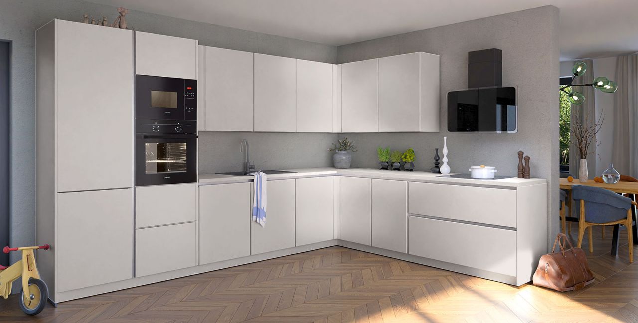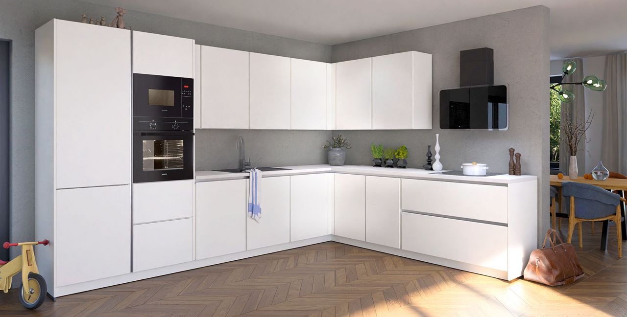 Inclusief inbouwoven zwart Junker JF1300061 Energieklasse A, keramische kookplaat Junker JR36DT54, afzuigunit RVS / glas Faber GLAM-FIT BK80 Energieklasse A, koelkast met ****vriesvak Junker JC20GCSE0 Energieklasse E, magnetron Junker JP4119260, inbouw-designspoelbak Elleci Logik 300, XL-kasten, onderkast met uittrekinterieur.