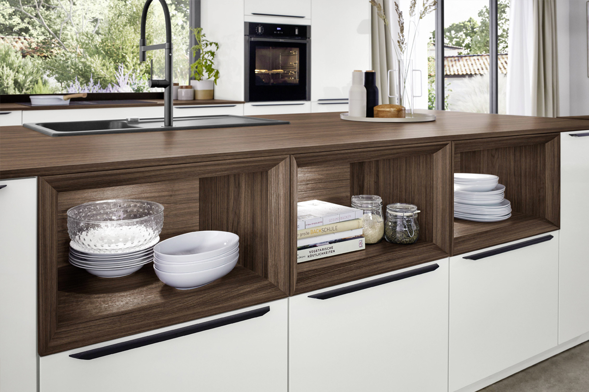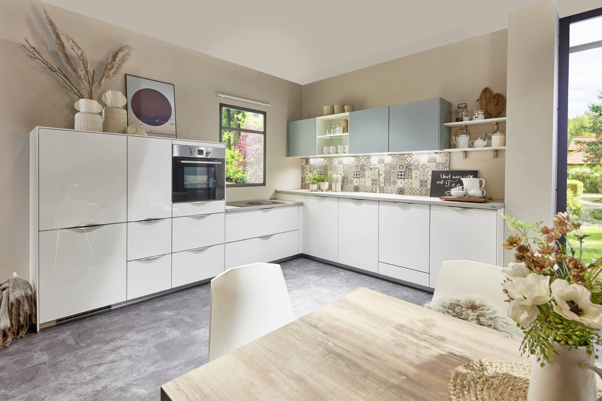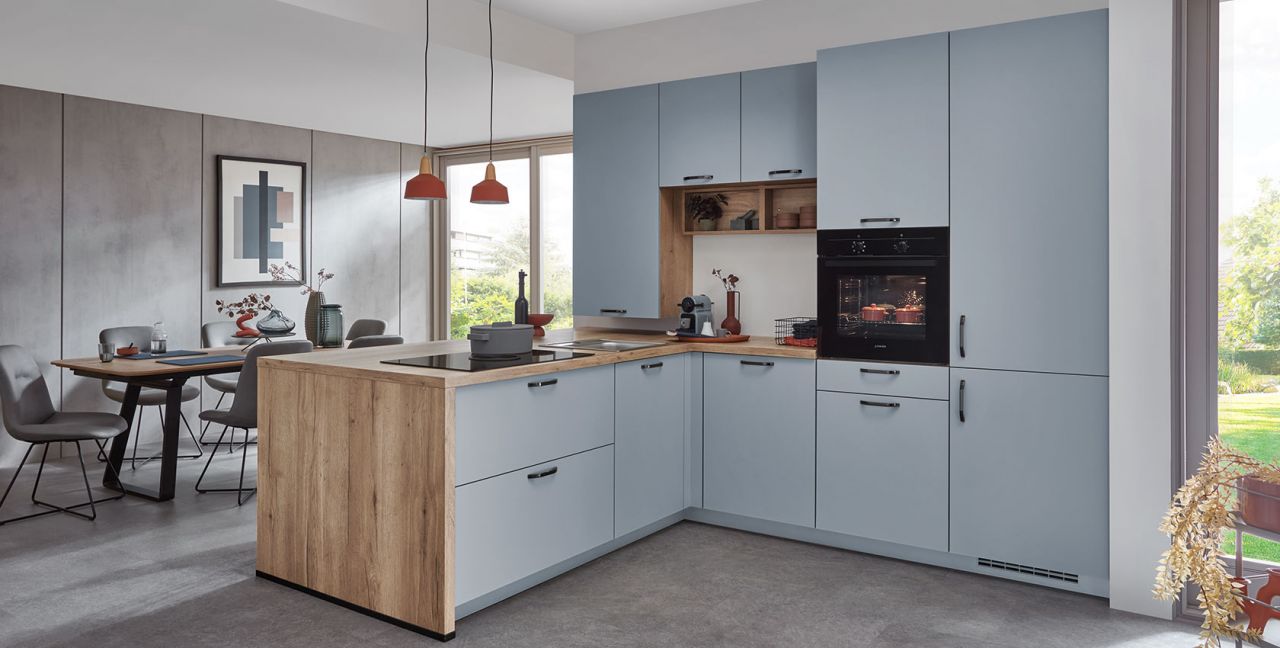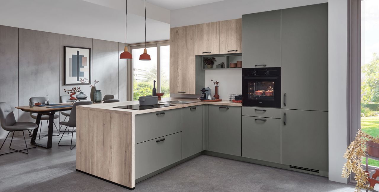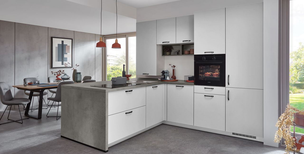 Inclusief inbouwoven zwart Junker JF1100061 Energieklasse A, keramische kookplaat met inductie en werkbladafzuiging (circulatielucht) Bora GP4U, koelkast met ****vriesvak Junker JC40GCSE0 Energieklasse E, RVS-inbouwspoelbak Rodi NewManaus, XL-kasten, onderkast met uittrekinterieur, wand-schappenkasten, eetbar.